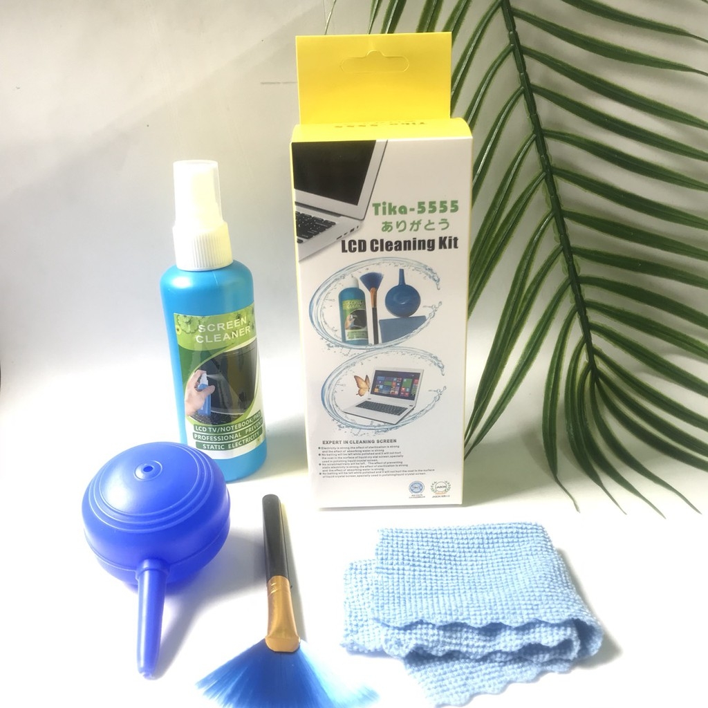 - Gồm: Cọ, khăn lau chuyên dụng, dụng cụ thổi bụi, nước rửa màn hình.